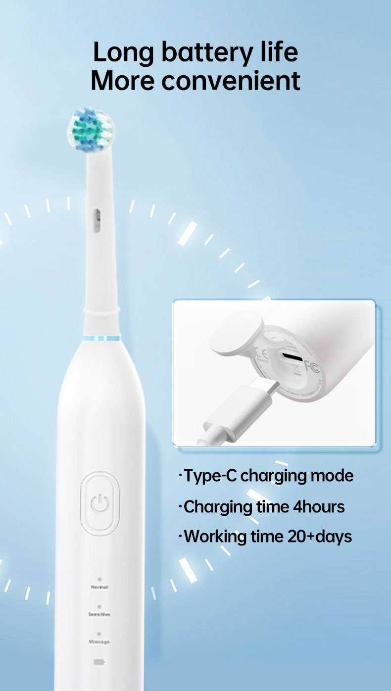 【30-Day Battery Life】The electric toothbrush features a 4-hour quick charge battery that lasts up to 30 days, far outperforming other toothbrushes on the market. you can always use this toothbrush while traveling or on a business trip