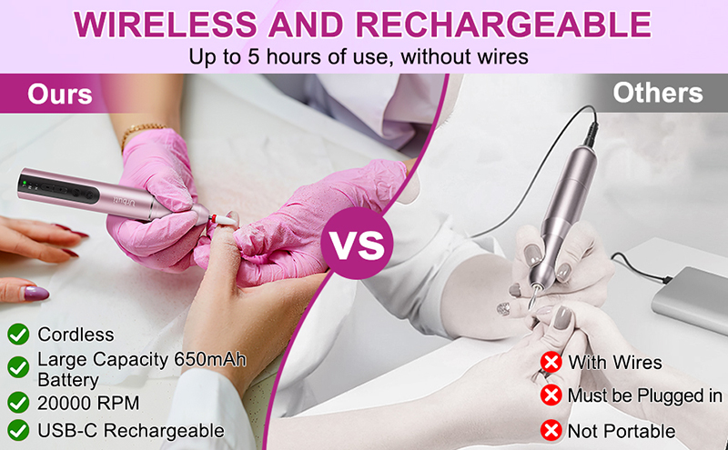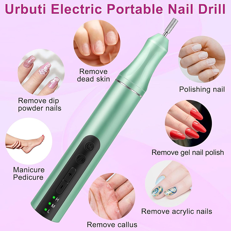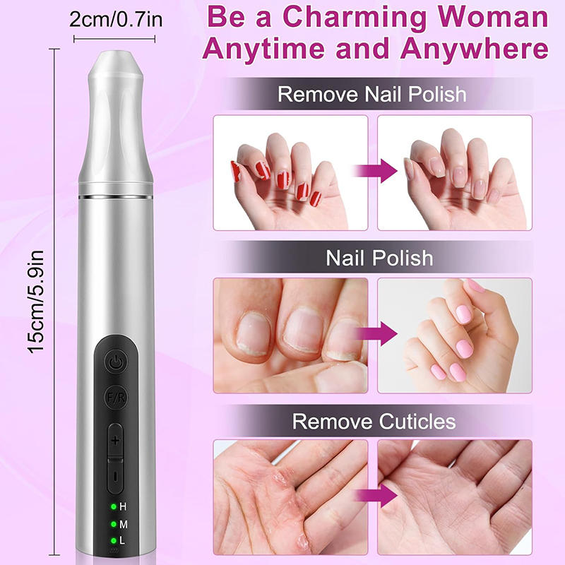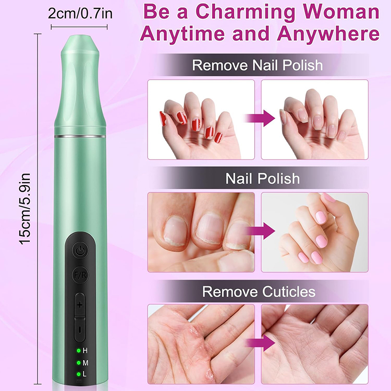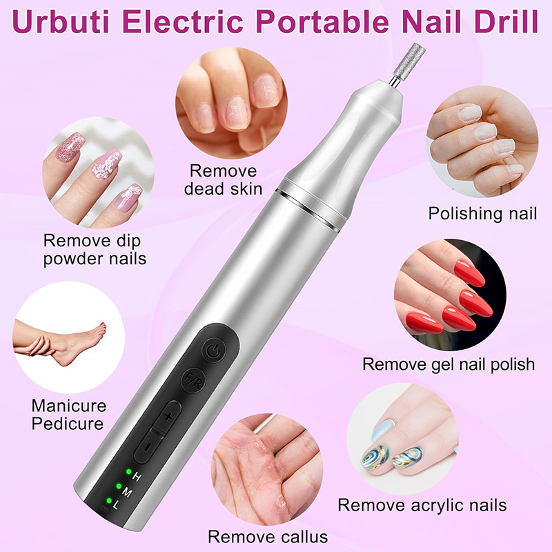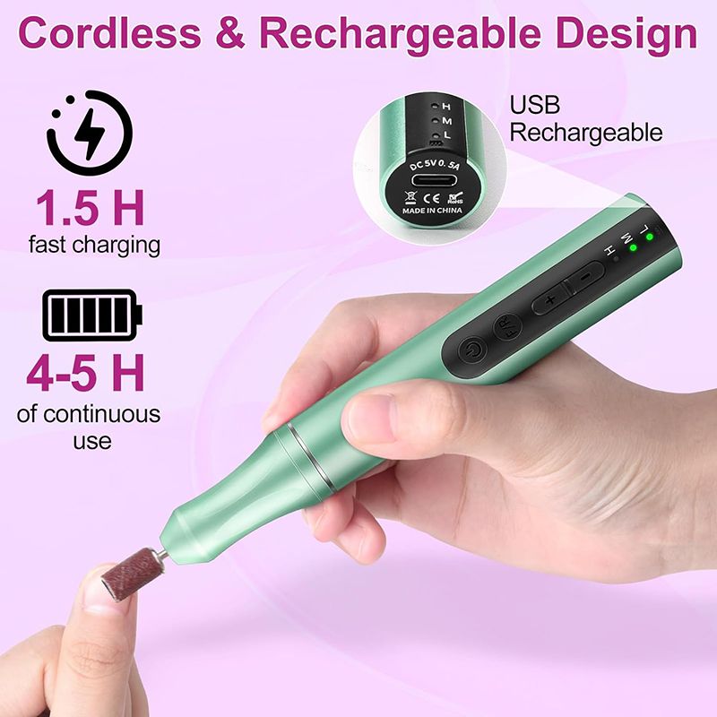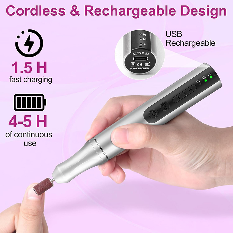 nail drills for acrylic nails is designed to be lightweight (85g) and can fit in your purse or clothes pocket. It also comes with a USB charging cable which can be easily plugged into any USB device for charging, making it convenient for you to enjoy your nail care anytime and anywhere.