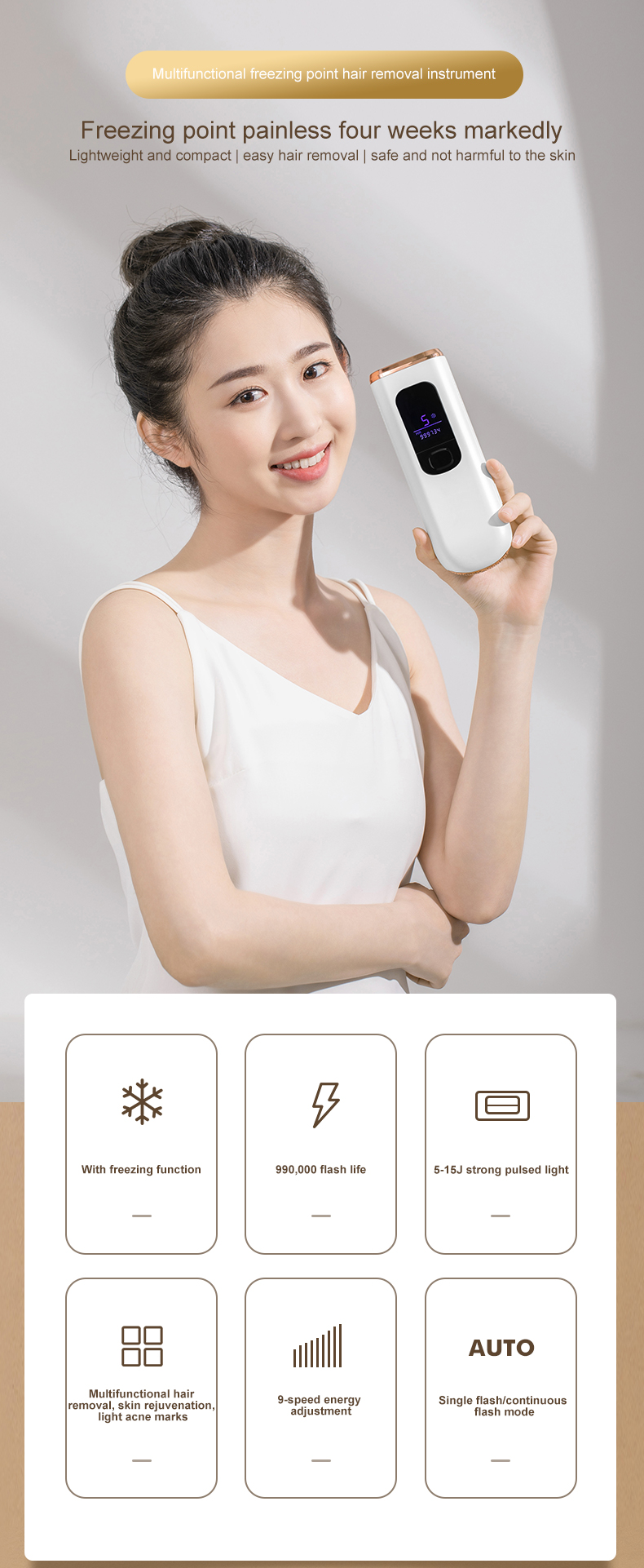 - Get silky-smooth results at-home. It adopts clinical-grade sapphire ice-touch technology to lower the temperature from 158℉ to 67℉ at the point of contact with your skin.