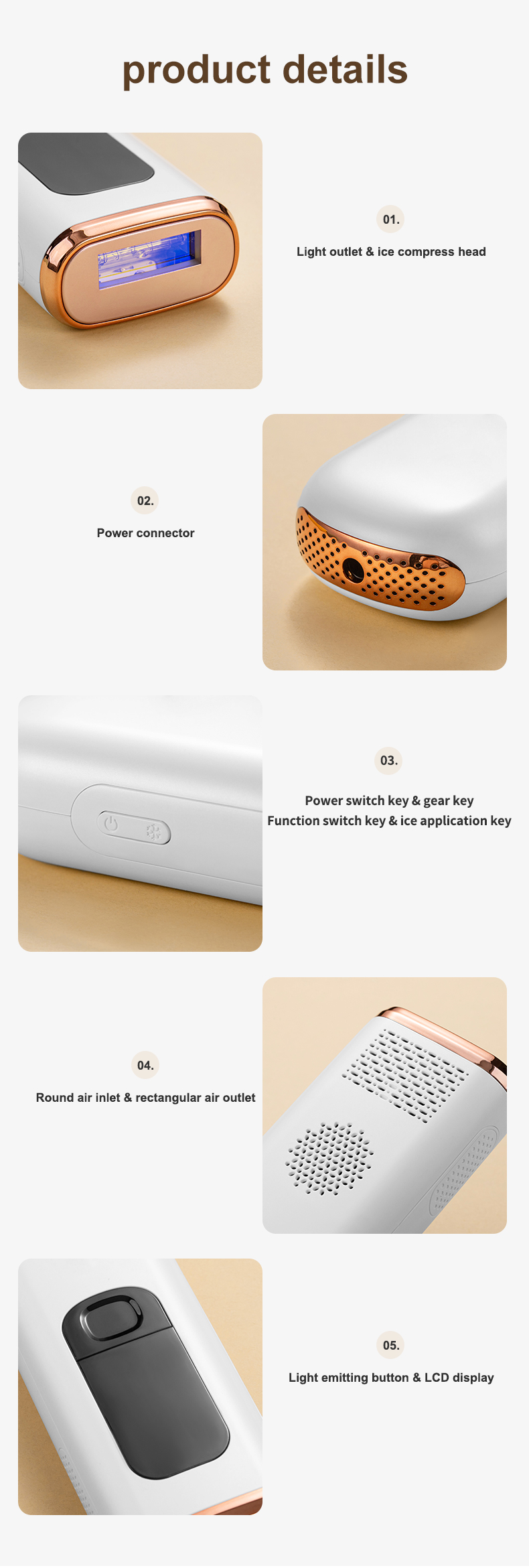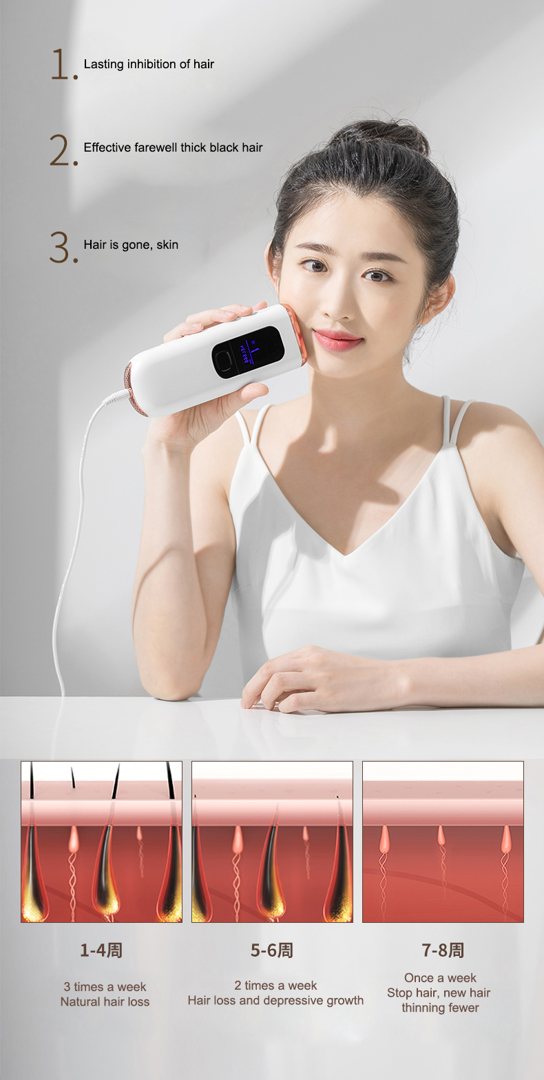 (Note: 1, Not suitable for tattooed and over-tanned skin, wounded areas, and pregnant. 2, It is a plug-in device, please keep the device always connected to power during the treatment. )