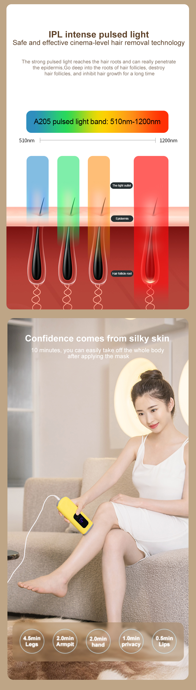 - Enjoy smooth skin and get a noticeable reduction in hair. After the first four weeks of treatment continue with bi-weekly touch-ups to look your best year-round. The sapphire-based flat light window design targets hair at the root while ensuring each flash is nearly painless and efficient.