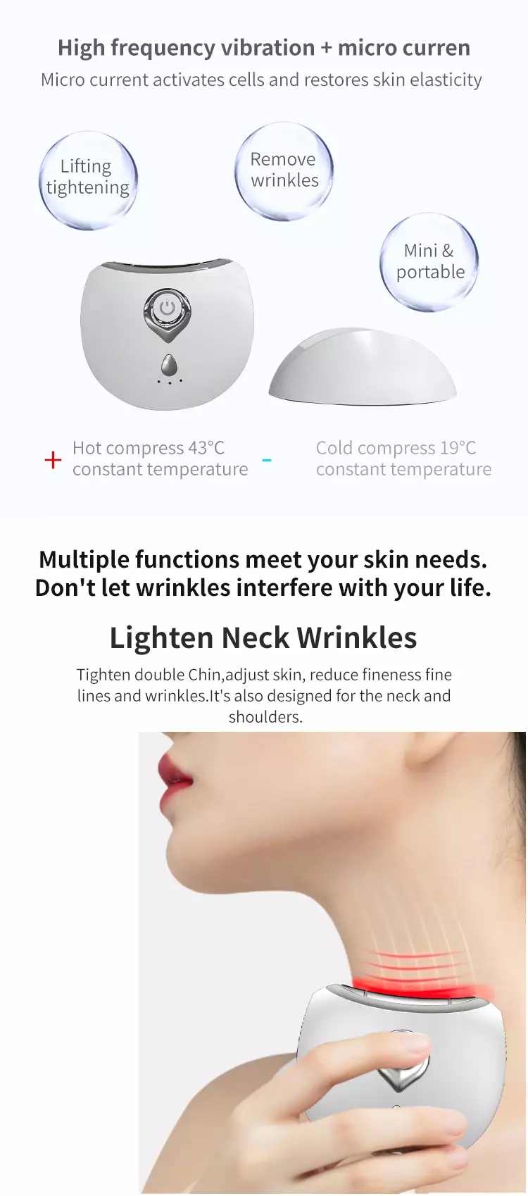 EMS & High Frequency Vibration,Smooth fine line and remove neck wrinkles