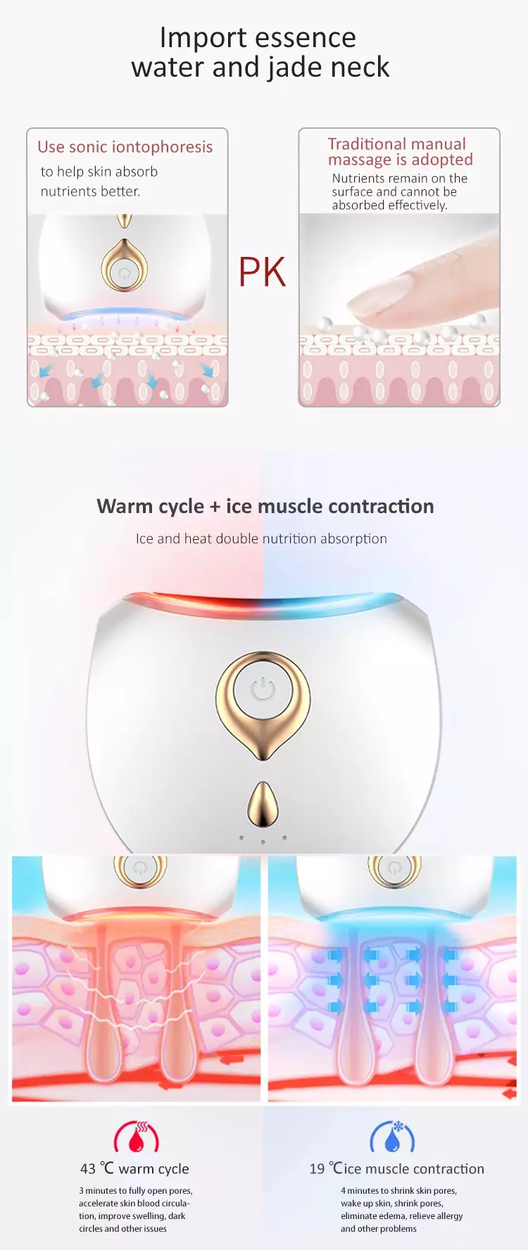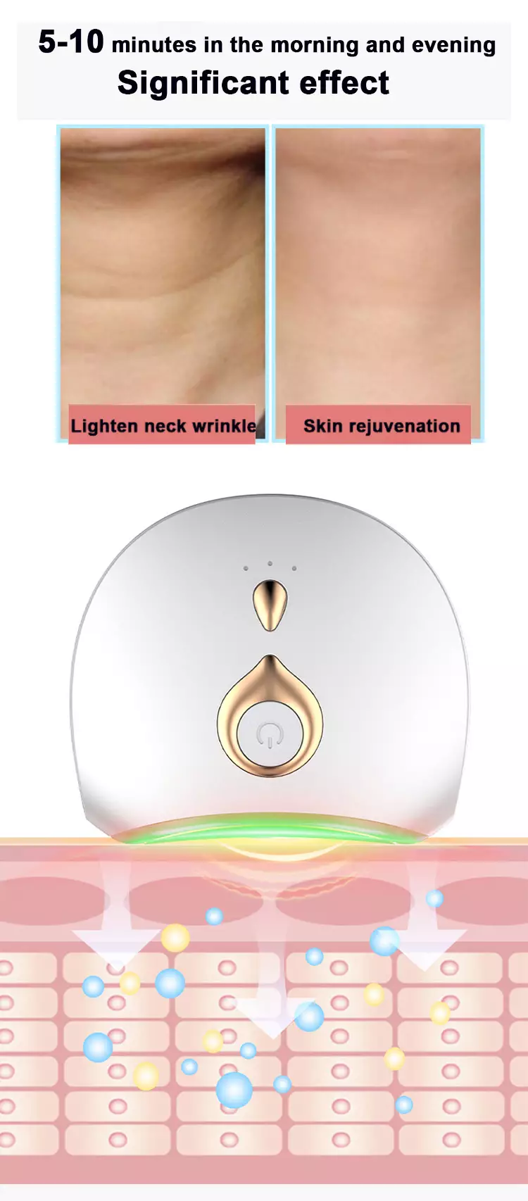 Tighten double chin,adjust skin,reduce fineness fine lines and wrinkles.It's also designed for the neck and shoulders.