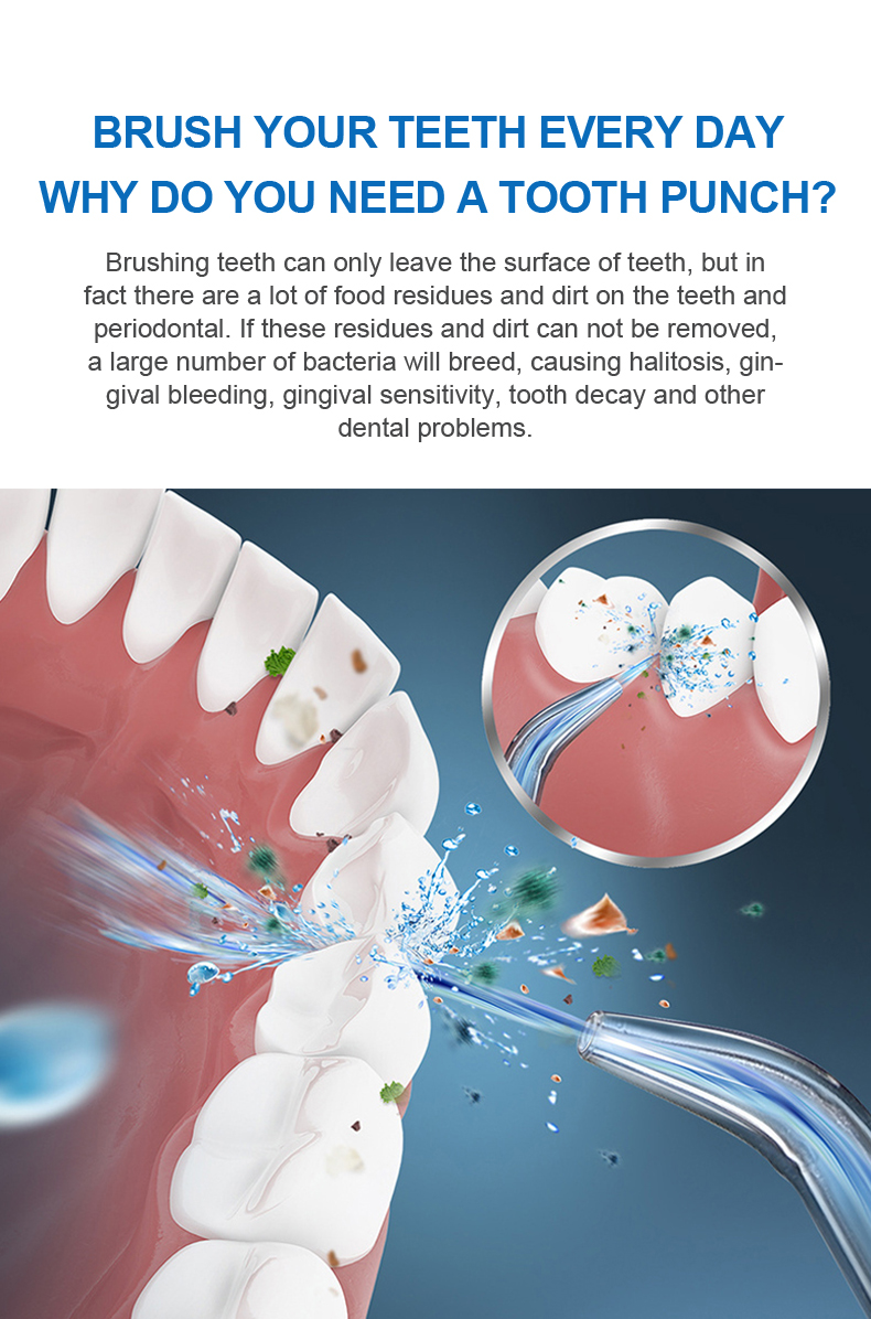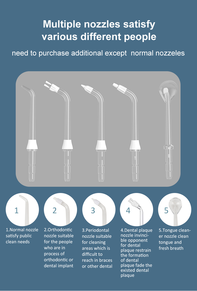 This water dental pick delivers high water pressure pulses at 1400-1800 times per minute, effectively removing 99.9% of dental plaque for deep teeth cleaning. This water dental pick massages the gums, promotes blood circulation, and addresses oral issues like bad breath, orthodontic teeth