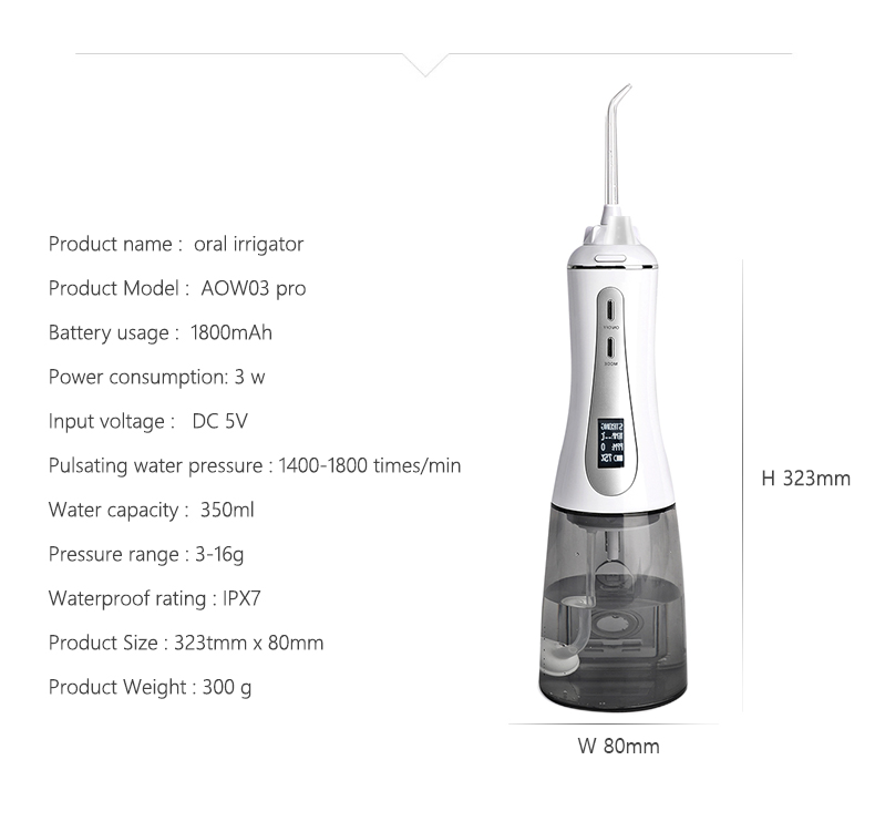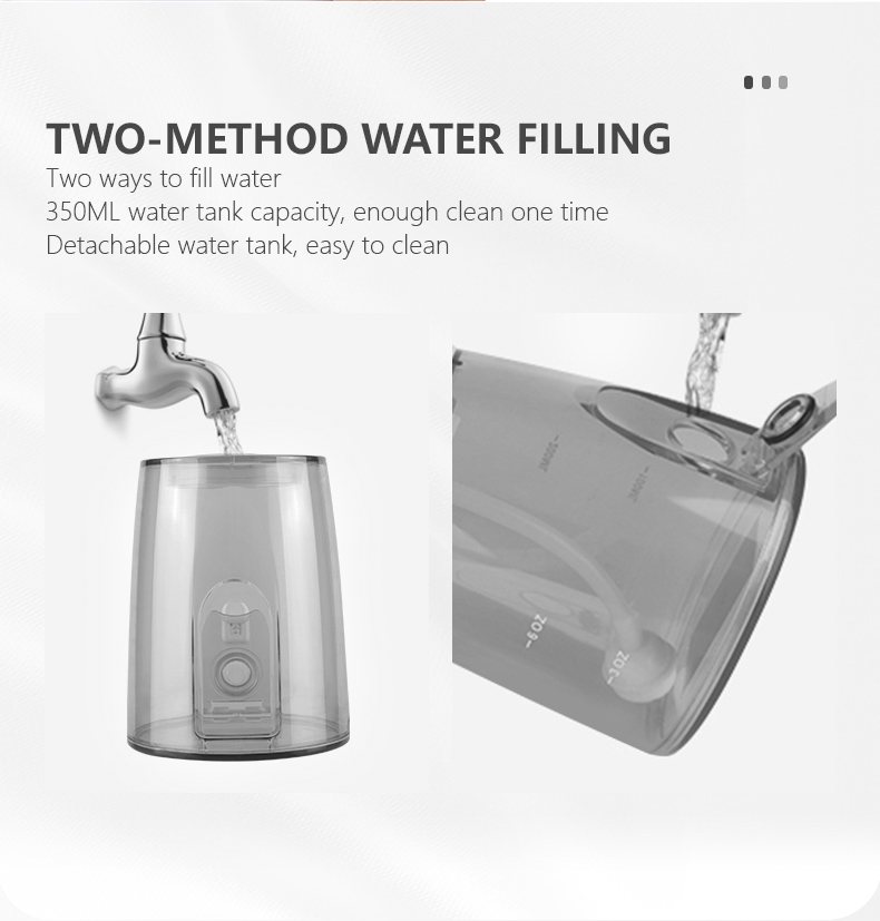 This water dental flosser features an upgraded 350ml water tank, twice the capacity of other old models, eliminating the need for frequent refills and making your oral cleaning more convenient and efficient