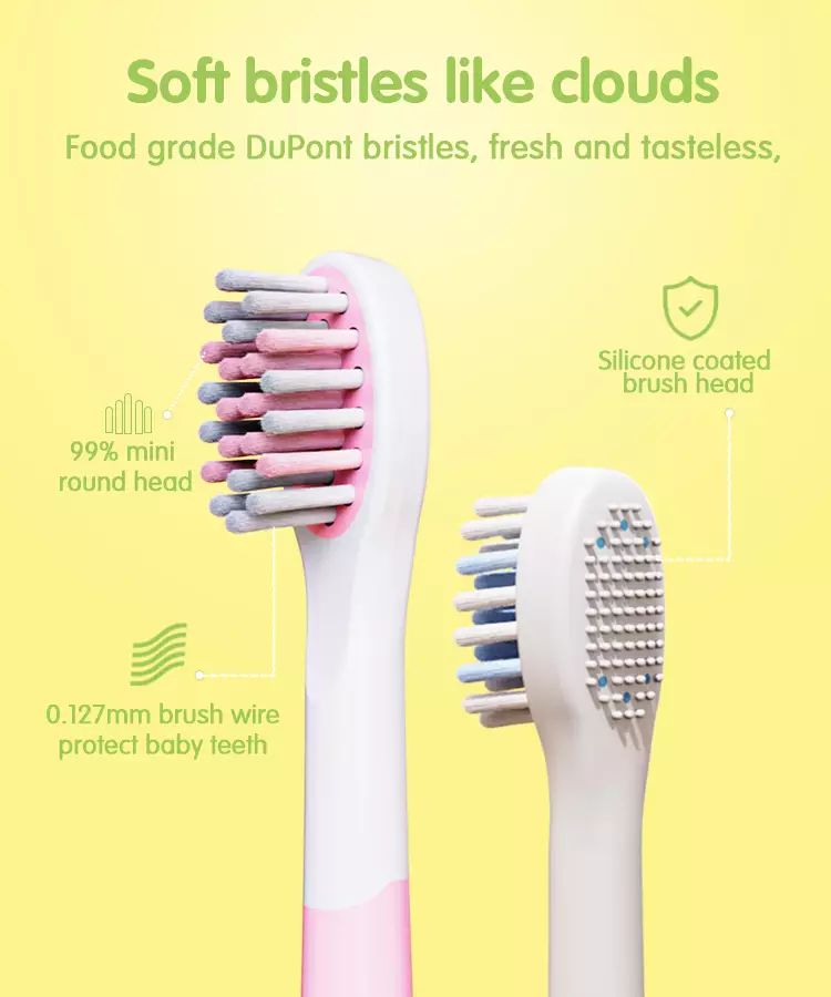 - EXCITED AND FUN BRUSHING TEETH: Cute animal theme design, Let your children fall in love with brush their teeth. Unique small brush head with 3D curved soft bristles, comfortable and efficient, perfect for children's gums and small mouth.