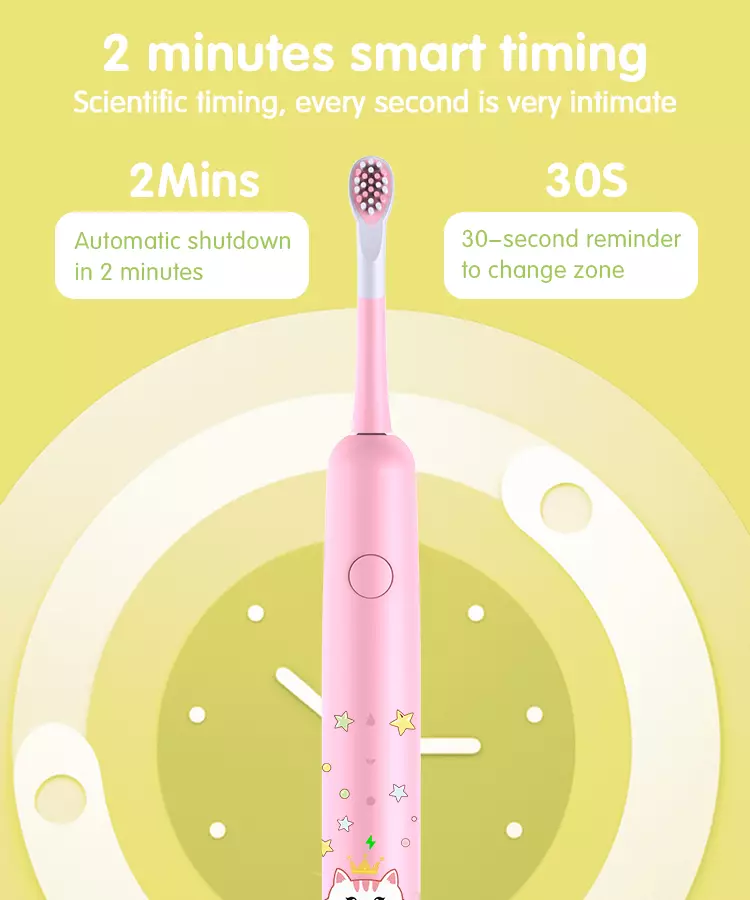 - AUTOMATIC TIMER: This electronic toothbrush has a built-in 2-minute smart timer that encourages your child to brush for longer periods of time, develops good brushing habits and reduces tooth decay.