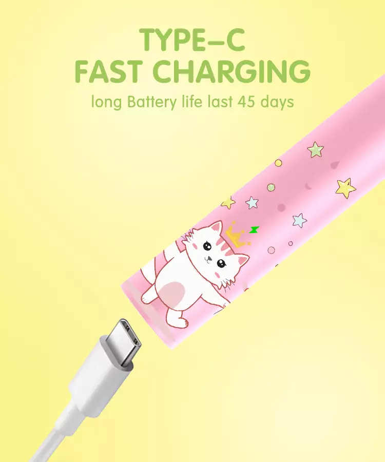 - EXTRA LONG BURNING LIFE: This rechargeable kids electric toothbrush requires only 3-4 hours of charging and works for up to 60 days. It's easy to use at home and while traveling to stick to daily brushing.