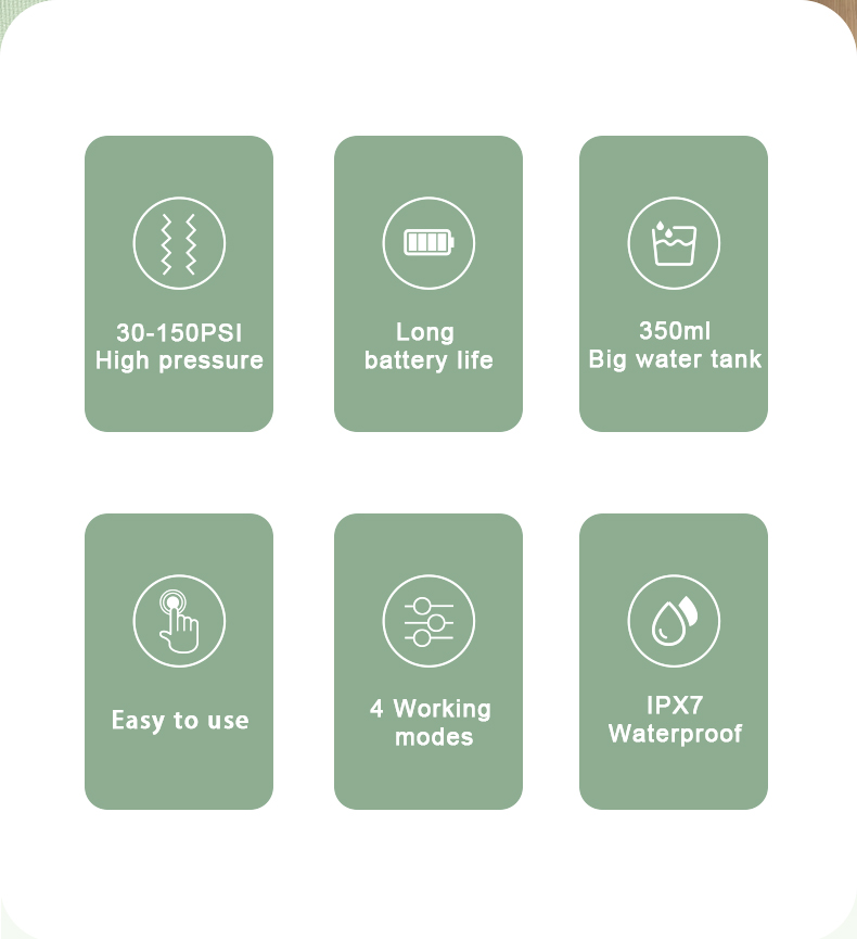 Our wireless water dental pick boasts superior waterproofing, allowing easy cleaning and safe use during showers.