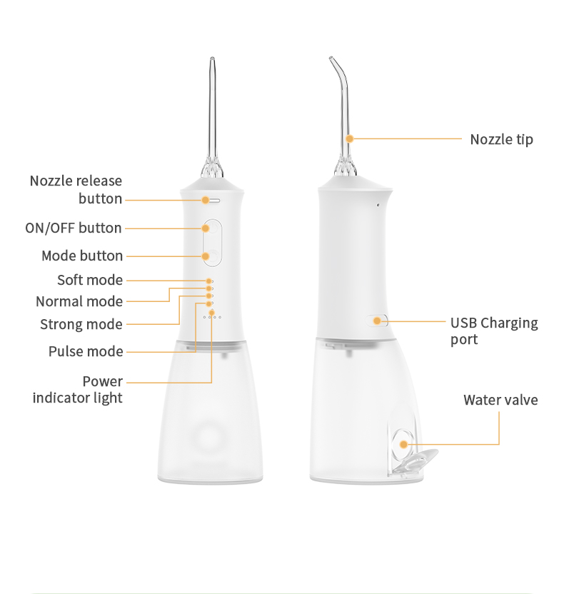 Product name:USB Charged Portable Oral Irrigator Rechargeable Water Jet Flosser Waterproof Ipx7 Dental Water Flosser